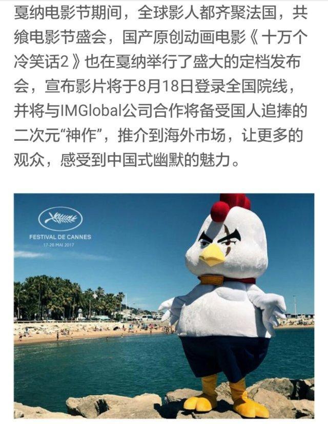 甚至在戛纳电影节上《十万个冷笑线》举行了盛大的发布会,并与IMGlobal公司宣布合作将国内的“二次元文化”推广到海外。