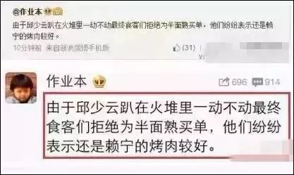 2013年5月,微博名为@作业本 的账号发文将邱少云比作烤肉,称:“由于邱少云趴在火堆里一动不动最终食客们拒绝为半面熟买单,他们纷纷表示还是赖宁的烤肉较好。”