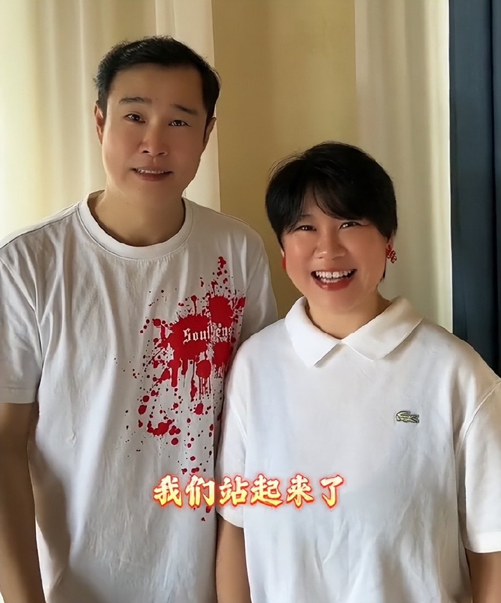 短片中,夫妻俩都是身穿白色T恤,很有情侣装的既视感。和以往相比,沈春阳看起来瘦了很多,脸上没有那么多的肉肉。瘦下来之后,也显得更年轻。评论区中,有网友则调侃小沈阳的头发越来越少。