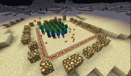 下面这个玩家自己做了一个循环移动的红石矿车,然后去引了一批僵尸回来,立刻坐上矿车,就这样一转一夜过去了....