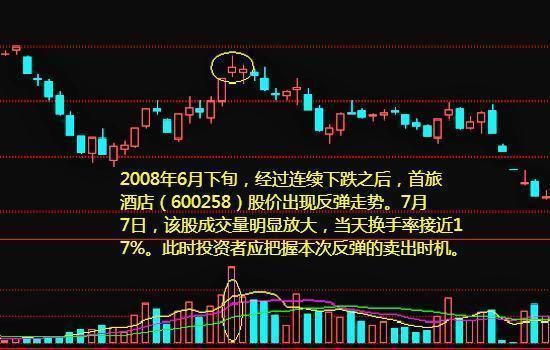卖点精讲: (1)在熊市反弹中,机构首要任务是出货。当成交量突然放大时,意味着众多买盘集中入场,而机构正好趁机抓住时机大力出货。 (2)另外,熊市资金面紧张,一旦大幅放量,意味着积累的买盘已经集中入场,“该买的已经都买了,不买的以后也不会买”,因此反弹很可能到达顶部。 (3)为稳妥起见,投资者可在放量当天先卖出部分股票。若后面市场开始走弱,则可以全部卖出。若市场继续走强,则继续持有剩余股票,寻找下次卖出时机。 (4)是否能够把握好熊市反弹的卖点,考验的不单是研判水平,更多是能否控制好心态。套牢投资者需要克服主观幻想,做到“该卖出时就卖出”