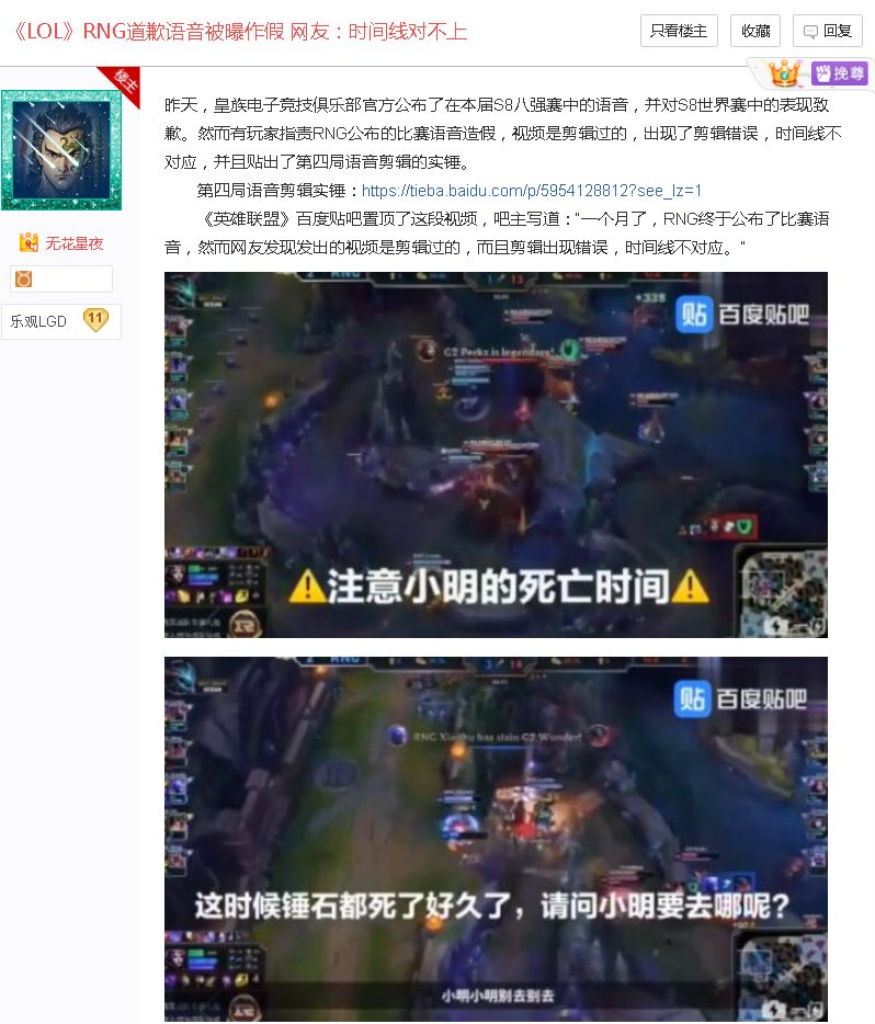 面对质疑,RNG经理放出了未剪辑版原视频进行澄清,表示是因为视频剪辑而出现了一些容易产生误会的地方,这件事才算告一段落。