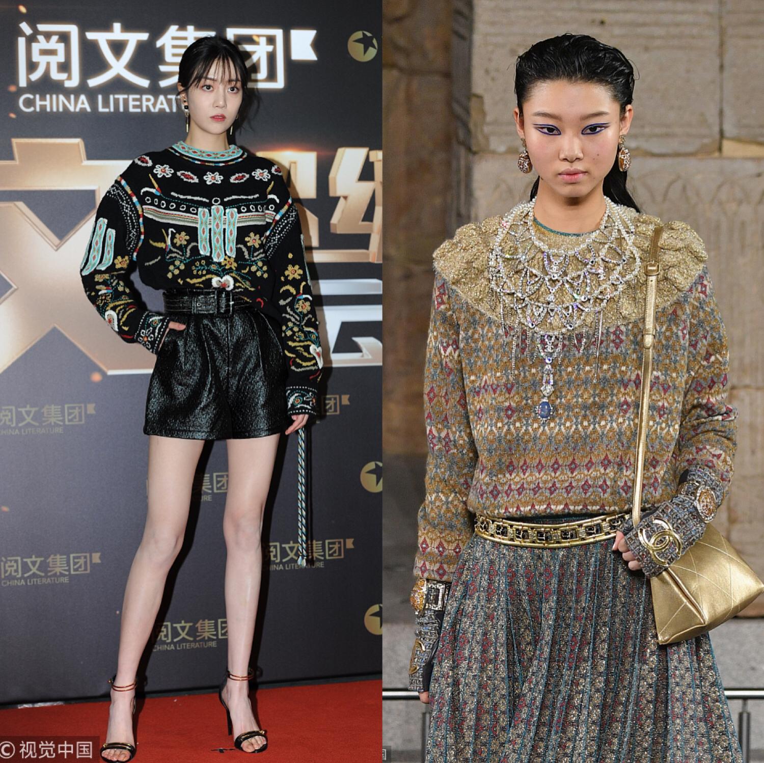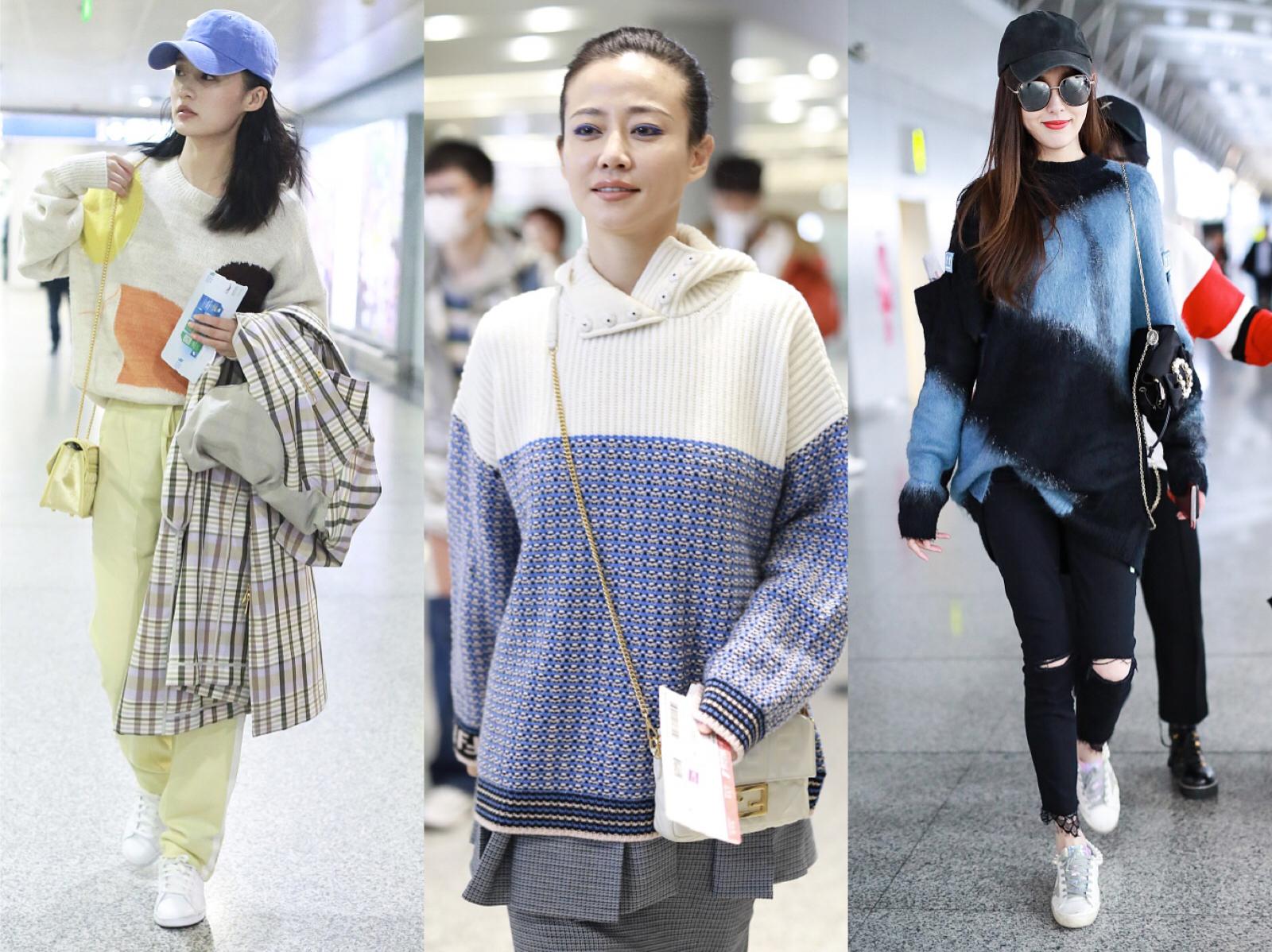 李沁这件拼色毛衣颜色淡雅,毛衣上的拼接图案与下身的鹅黄色裤装呼应,也与李沁的清冷气质很相配。“高贵妃”谭卓的这件Fendi拼色毛衣远看是蓝白拼色,细看则是夹杂了深蓝、浅蓝、白色、黄色的多种颜色拼接,加上细节处理,毛衣也可以穿得很有质感。而唐嫣这件深浅蓝色的大色块拼接毛衣也很好看,马海毛制造出的晕染感婉约迷人,宽松的款式更显出她腿部的纤细。