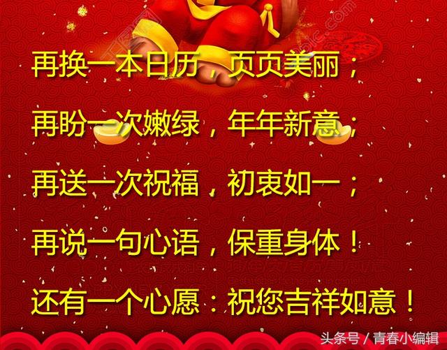 二:前程似锦,吉星高照,财运亨通,合家欢乐,飞黄腾达,福如东海,寿比南山!酒越久越醇,朋友相交越久越真;水越流越清,世间沧桑越流越淡。祝新年快乐,时时好心情!