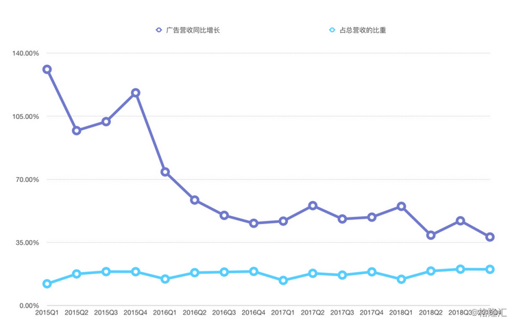从最近的财报来看,上一季度广告占总收入的比重继续突破两成,年度广告收入占比已经接近两成。